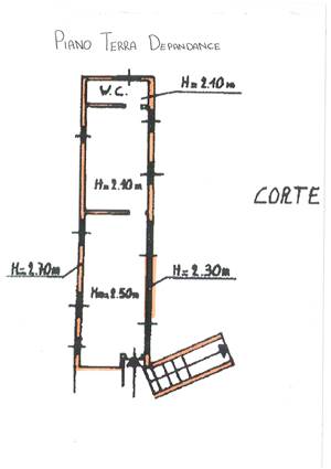 Adiacenti alla proprietà da un lato troviamo un terrazzo porticato di 30 mq con giardino di 70 mq, dal lato opposto un terrazzo di 100 mq di cui 25 mq porticato, un giardino di 110 mq, una corta destinata a parcheggio con tettoia per 5 posti auto e nella parte terminale della proprietà un terreno coltivato ad orto/frutteto di circa 500 mq.