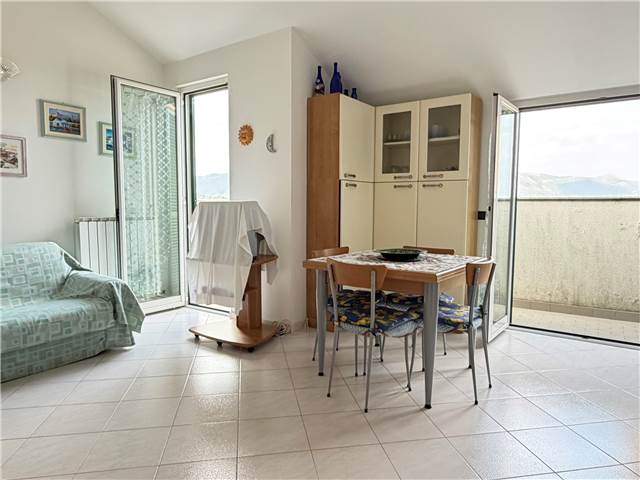 ALBENGA: A 3 km dal mare in piccolo caseggiato edificato a fine anni '90, in complesso dotato di funzionale piscina condominiale, ampio bilocale al terzo ed ultimo piano mansardato dotato di ascensore, composto da ingresso nel soggiorno living con cucina a vista, camera matrimoniale, bagno finestrato con box doccia, terrazza vivibile con vista aperta-mare, riscaldamento autonomo tramite caldaia esterna a gas, buona esposizione solare. Possibilità d'acquisto di un comodo box di 25 mq di consistenza servito dall'ascensore al piano interrato alla cifra richiesta di € 20.000. Ottima casa vacanza e/o da investimento. Ape classe F - Ipe 110,50 kWh/m2anno Richiesta € 145.000