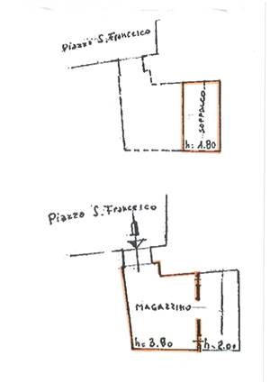 ALBENGA: Nel centro storico, nella rinomata Piazza San Francesco, caratteristico locale ad uso magazzino della superficie commerciale di 34 mq soppalcato con la possibilità di effettuare il cambio d'uso in attività commerciale, adatto ad ogni attività d'artigianato o commerciale grazie alla ottimale ubicazione nella caratteristica Piazza.