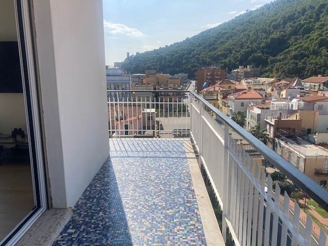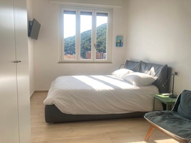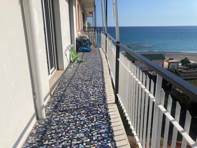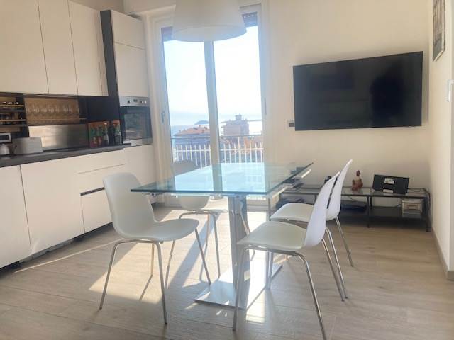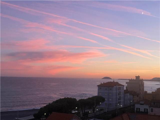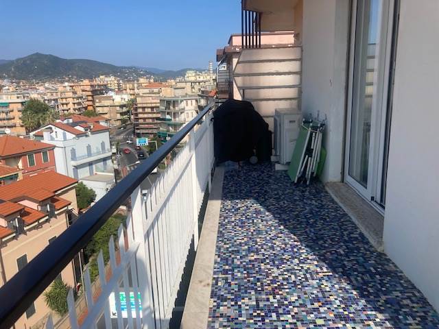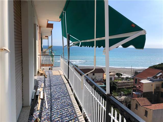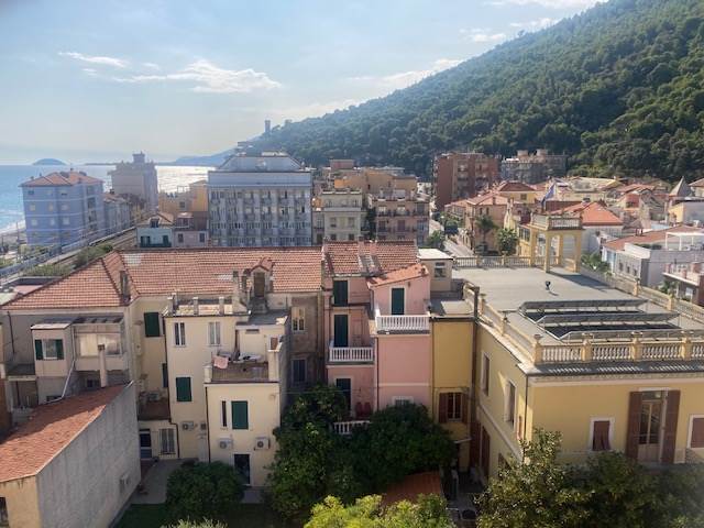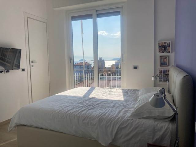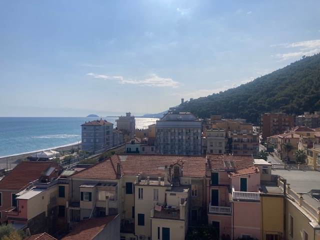 BORGHETTO SANTO SPIRITO: A circa 50 metri dal mare e comodo ad ogni tipo di servizio, luminoso trilocale completamente ristrutturato posto al sesto ed ultimo piano di una palazzina in buone condizioni generali e dotata di ascensore. L'immobile è composto da ingresso-corridoio, soggiorno con cucina a vista, due camere da letto matrimoniali di cui una con bagno esclusivo finestrato e box doccia, mentre il secondo servizio dotato di box doccia ed areazione forzata, piccolo ripostiglio soppalcato. Completa la proprietà una terrazza angolare dotata di tenda da sole con stupenda vista mare fino all'Isola Gallinara da un lato e suggestiva e dominante vista sulla città fino a monti dall'altro lato. Le finiture sono ottimali con infissi in anodizzato con doppio vetro, tapparelle elettriche, pavimentazione omogenea in gres, impianti elettrico e idraulico rifatti a nuovo con ottimi rivestimenti dei locali sanitar, pompa di calore con split per aria condizionata caldo/freddo, riscaldamento centralizzato con elettrovalvole