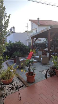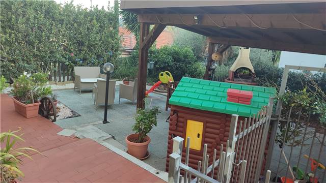 A pian terreno ampio soggiorno con cucina a vista, bagno e locale dispensa; al piano primo tre camere da letto, ripostiglio e bagno finestrato. Completano la proprietà due ampi giardini attrezzati con pergolato e zona relax.